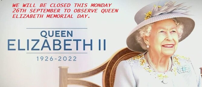 CLOSED 26TH SEPTEMBER - QUEEN ELIZABETH MEMORIAL DAY